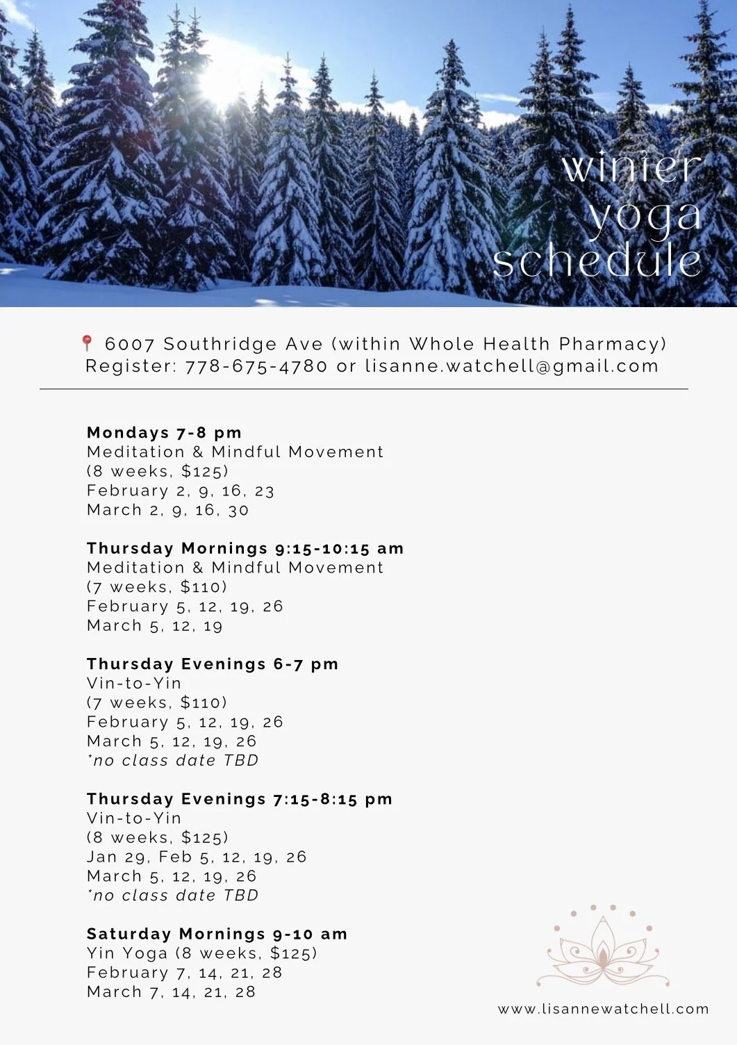 Please note that ALL in-person group classes are currently full. Please contact Lisanne to be added to a waitlist.